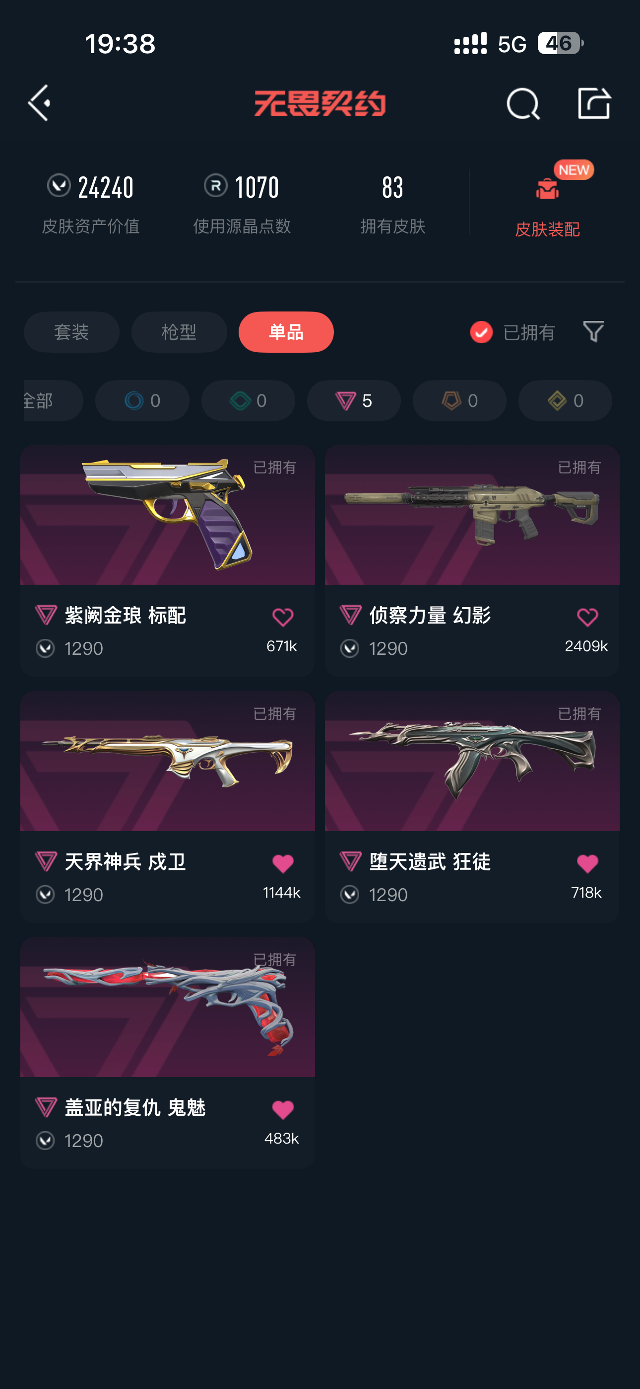 • 皮肤资产价值: 24240
