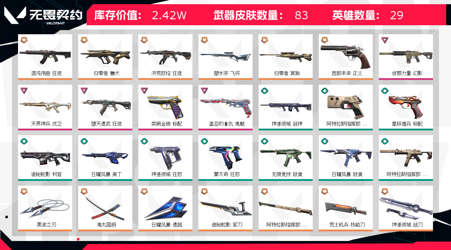 • 武器皮肤数量: 83