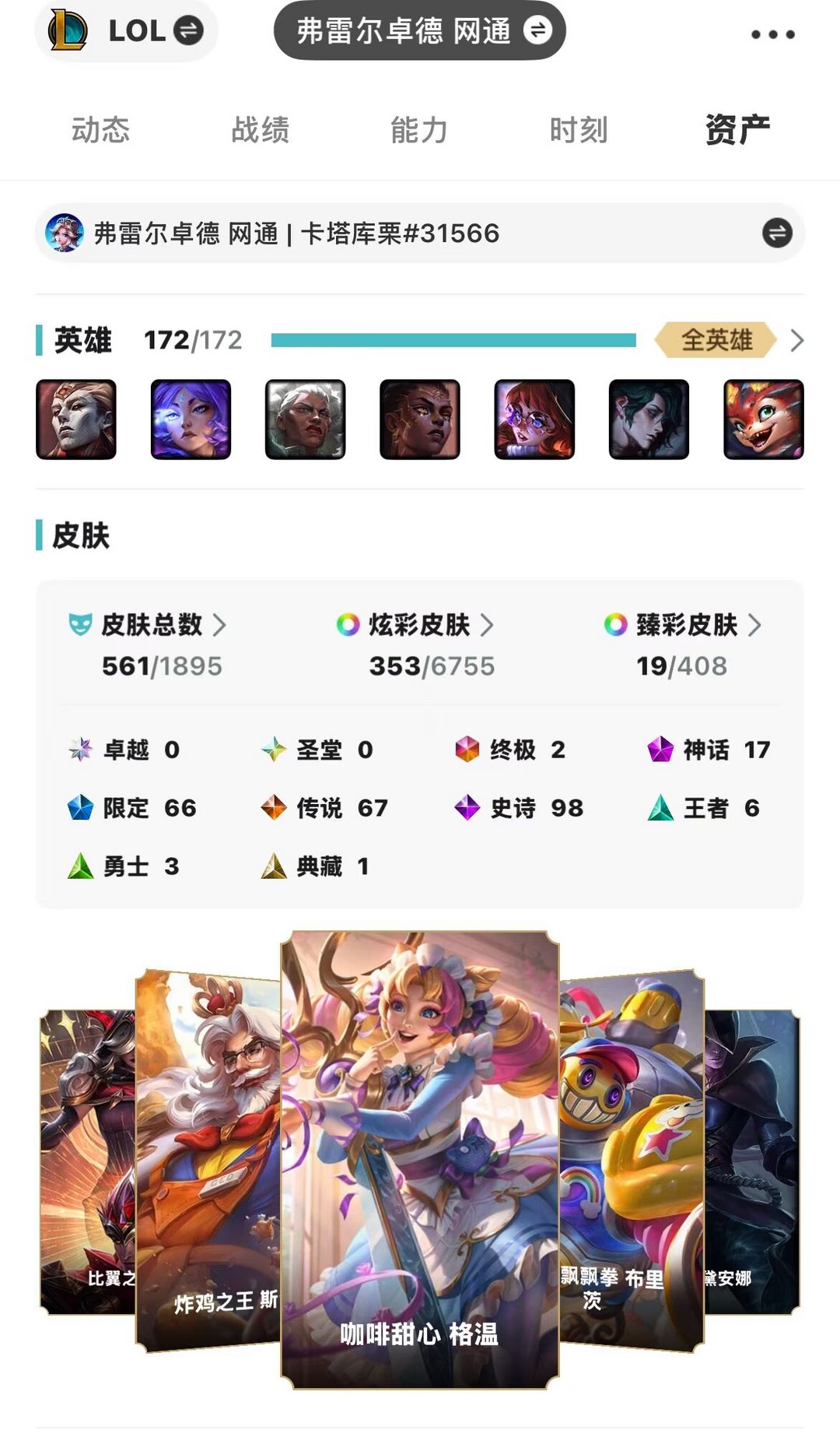 1451原皮★皮肤帝,商城基本清空,至臻海克斯系列很多🌟至臻KDA卡莎★黄龙瞎★冠军限定以及情人节限定皮肤很多🌟装逼必备