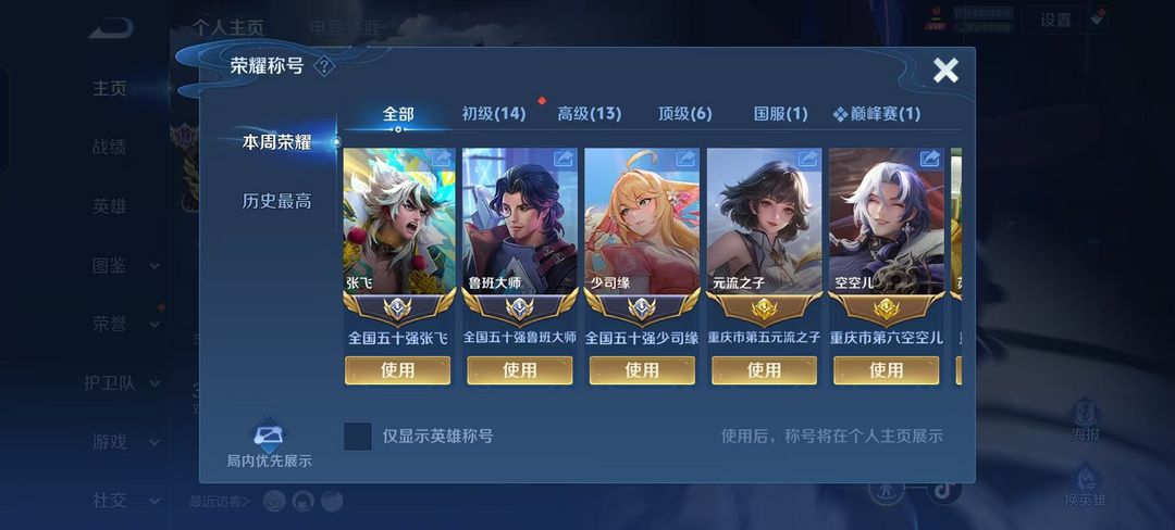 巅峰千强288名⭐️4月正式服大国太乙真人五小国盾山大禹张飞鲁班大师少司缘在榜⭐️辅助百段⭐️禁巅峰