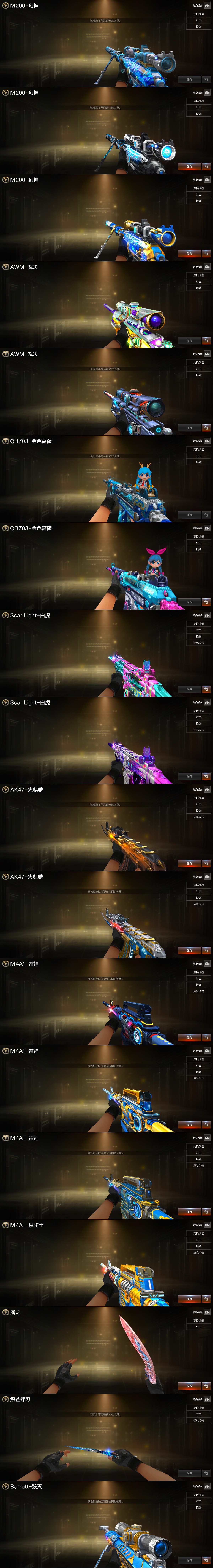 6套幻兽/EP世冠套/幻神三件套/裁决三件套/G36幻影/加利尔天袭/白虎三件套/6烈蝴蝶满级八面双
