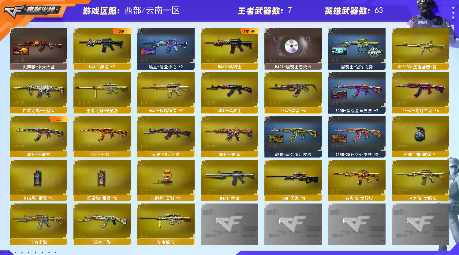• 游戏区服:穿越火线 / 西部 / 云南一区