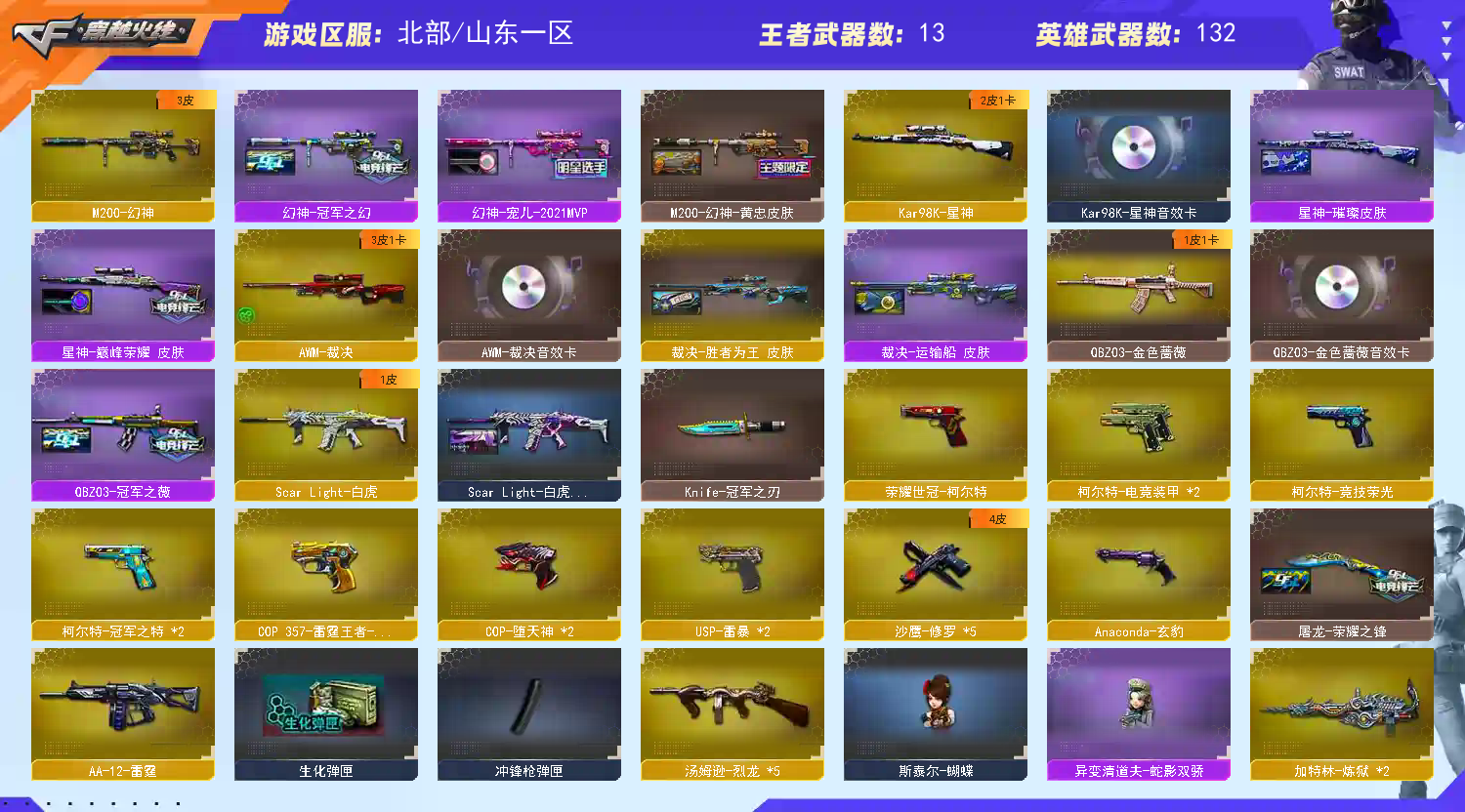 【北部】幻神宠儿3皮+王幻⭐裁决套星神套⭐usp雷暴×2cop×3冠特×2冠刃+白虎蔷薇套