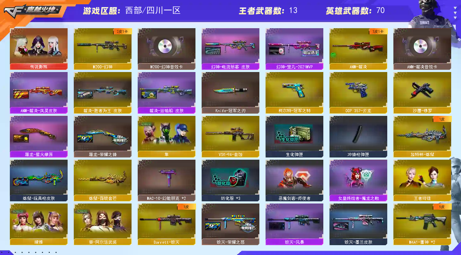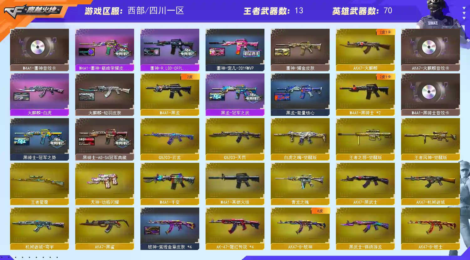 • 游戏区服:穿越火线 / 西部 / 四川一区
