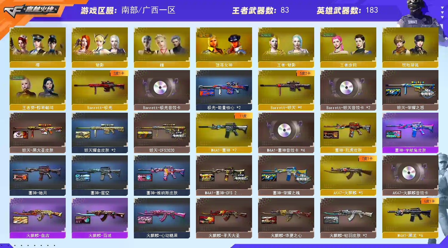 • 游戏区服:穿越火线 / 南部 / 广西一区