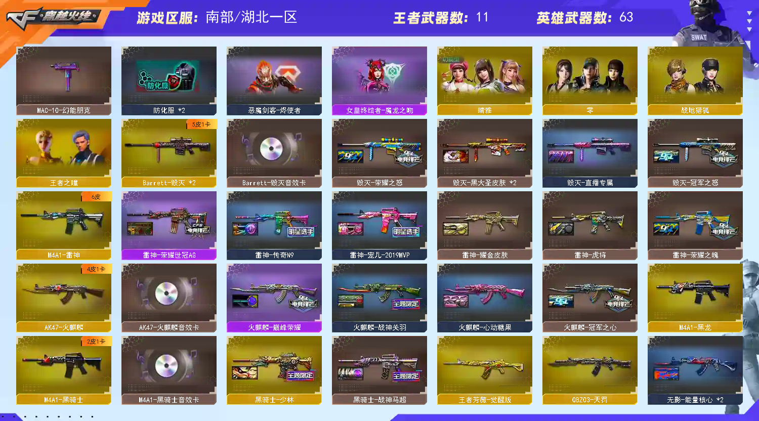 • 游戏区服:穿越火线 / 南部 / 湖北一区
