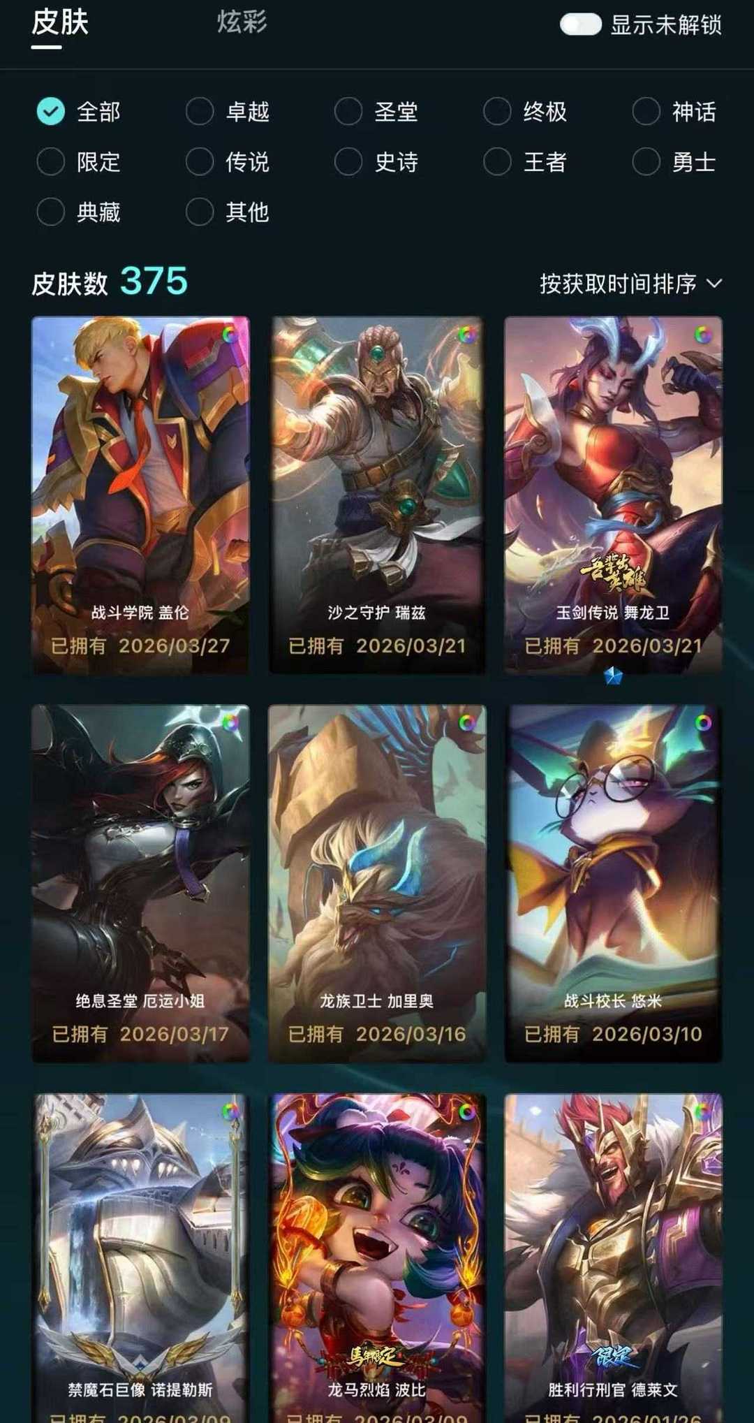 375皮 终极皮肤大元素使克拉斯 DJ娑娜 棋盘皮肤26*小小英雄188*进攻特效数量18