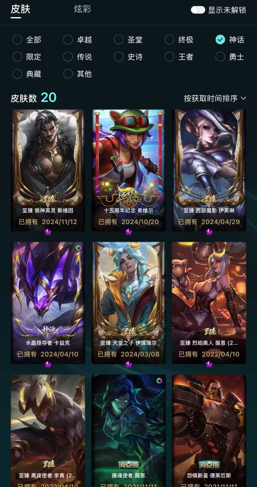 768皮+21神话🌼FPX签名全套、IG签名全套、至臻薇恩寡妇女警李青佐伊婕拉阿狸提莫赛娜、养蜂人、舞会公主、创星璐璐、御星艾希等