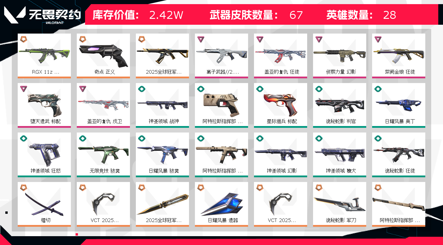 • 武器皮肤数量: 67