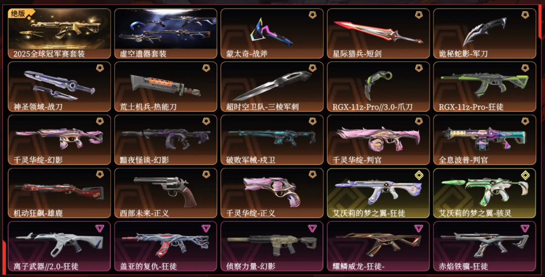可排位⭐三棱刺/2025冠军套/虚空遗弃套/RGX爪刀/千灵华绽幻影/显卡狂徒/赤焰铁骥狂徒