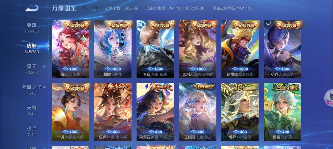 545皮肤❤️多金标8典藏71传说❤️马年貂蝉朵丽亚❤️FMVP多限定新皮肤