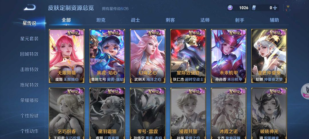 【天花板V10】535满皮满典藏/大乔时之奇旅新皮/虞姬星元/白金战甲/个性按键★多星元部件