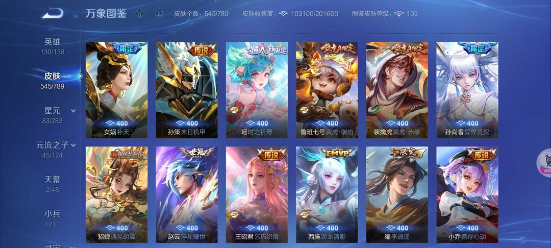 女生号 贵10 多皮肤多传说 别拿那些空号v10来比 要看性价比 貂蝉武则天夏侯惇孙悟空李白鲁班小乔荣耀水晶 妲己九尾无双皮肤 80个传说 473皮肤