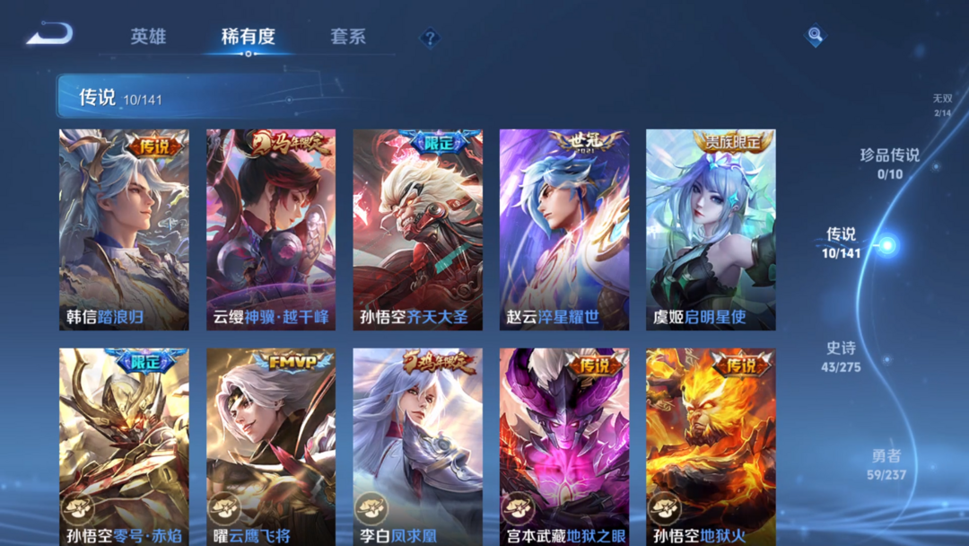 【非沄】无双贵10★真榜一满典藏630满皮★马克新皮★★虞姬星元★白金战甲★按键★瑶、天使星元