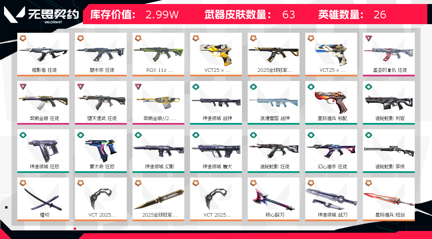 文明11111;镭切,VCT 2025 爪刀,盖亚的复仇 狂徒,噬影者 狂徒,紫阙金琅 狂徒,RGX 11z Pro 狂徒,堕天遗武 狂徒,
