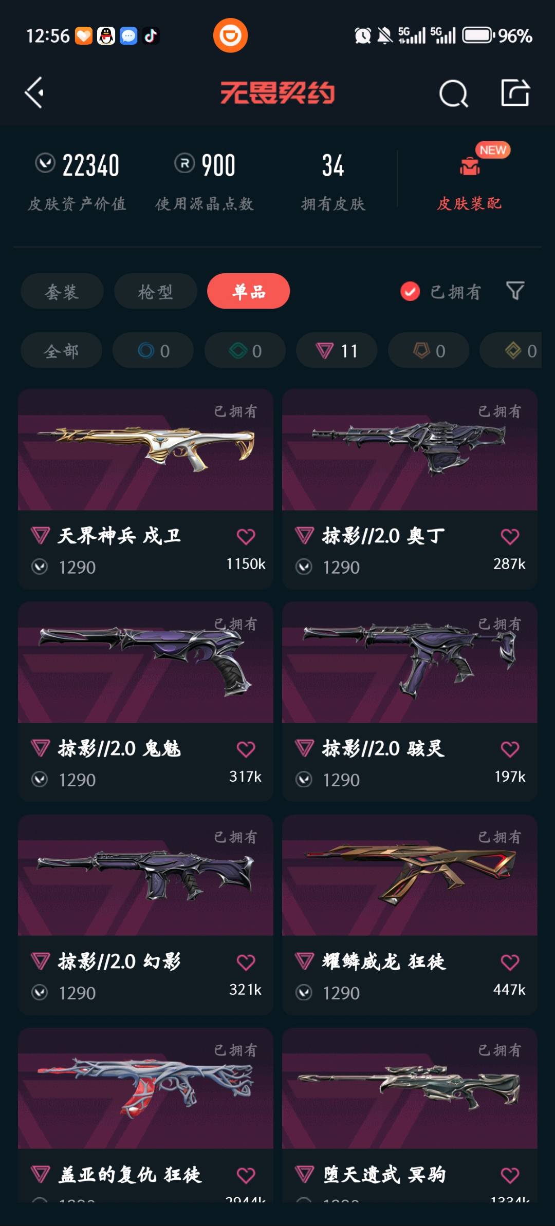 • 皮肤资产价值: 22340
