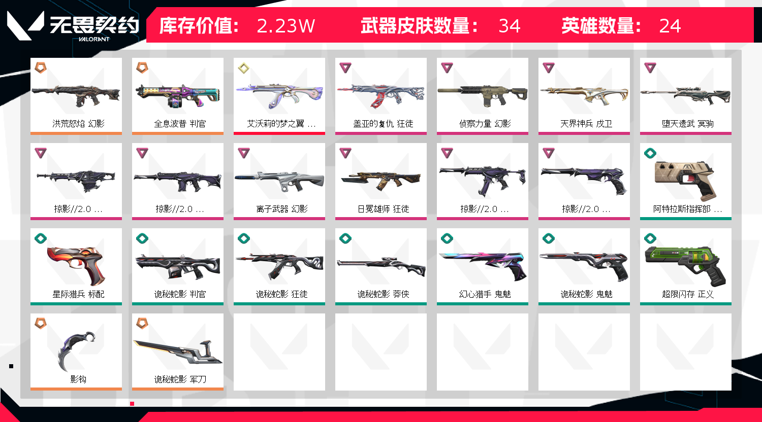 • 武器皮肤数量: 34