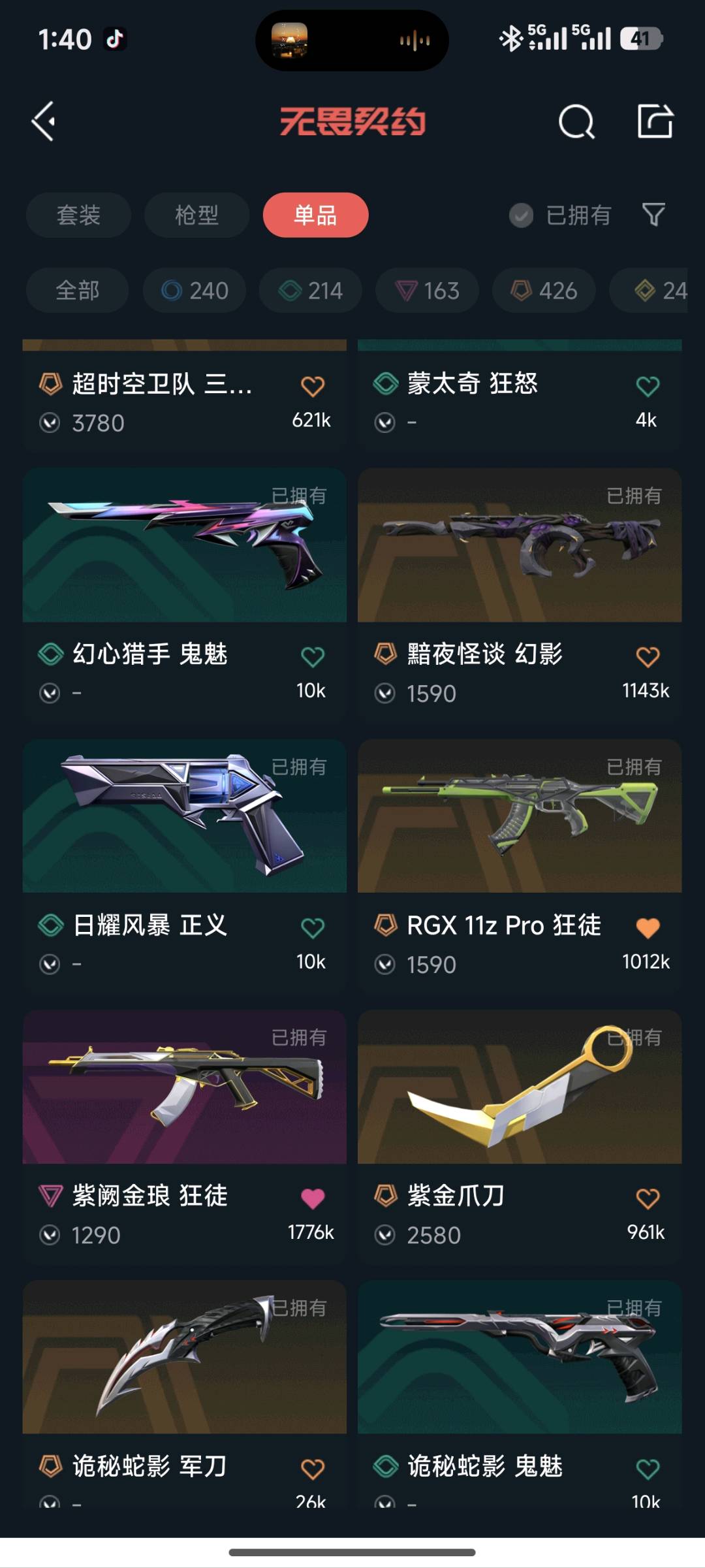 有需要来;紫金爪刀,紫阙金琅 狂徒,RGX 11z Pro 狂徒,塑水宗 狂徒,堕天遗武 冥驹,