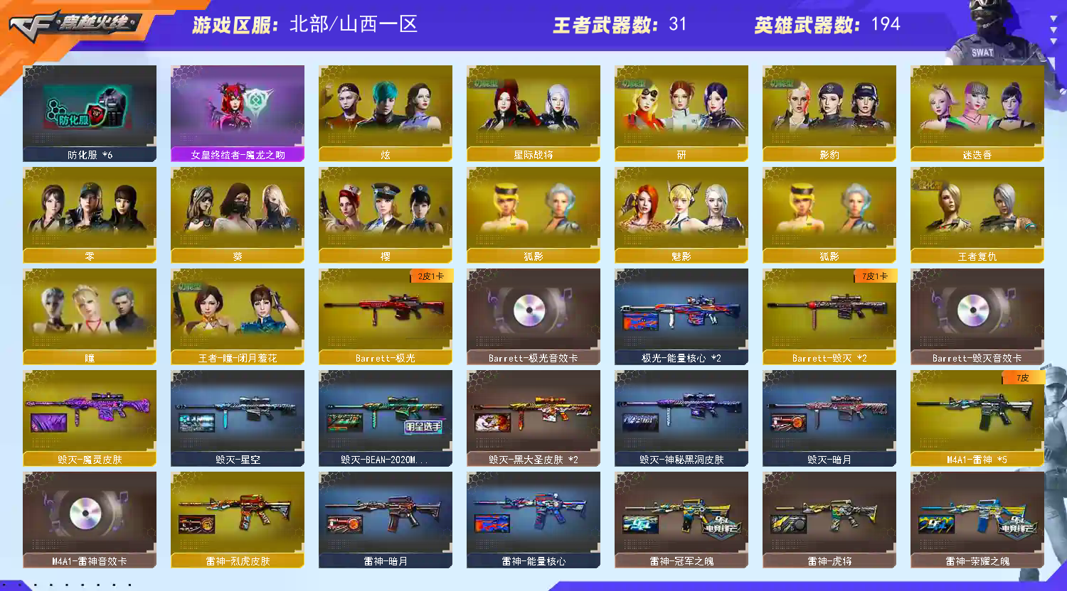 首页 > 租号大厅 > 穿越火线 > 北部/山西一区 > 幻神老AG带卡♥星神枪娘带卡♥裁决流光三件套♥白虎qbz幻影♥银翼5把高质量手枪♥隼六盘六炼狱蝴蝶