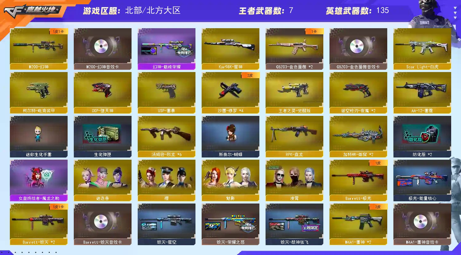 【北部】幻神巅峰+音❤星神❤USP雷暴COP❤白虎皮QBZ音❤雷暴套6烈斯泰尔
