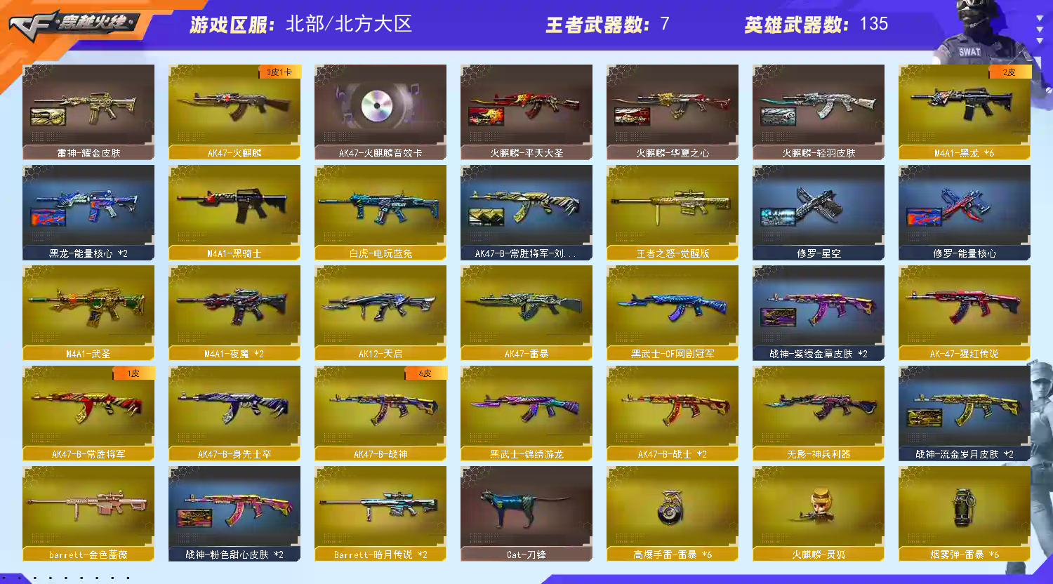 • 游戏区服:穿越火线 / 北部 / 北方大区