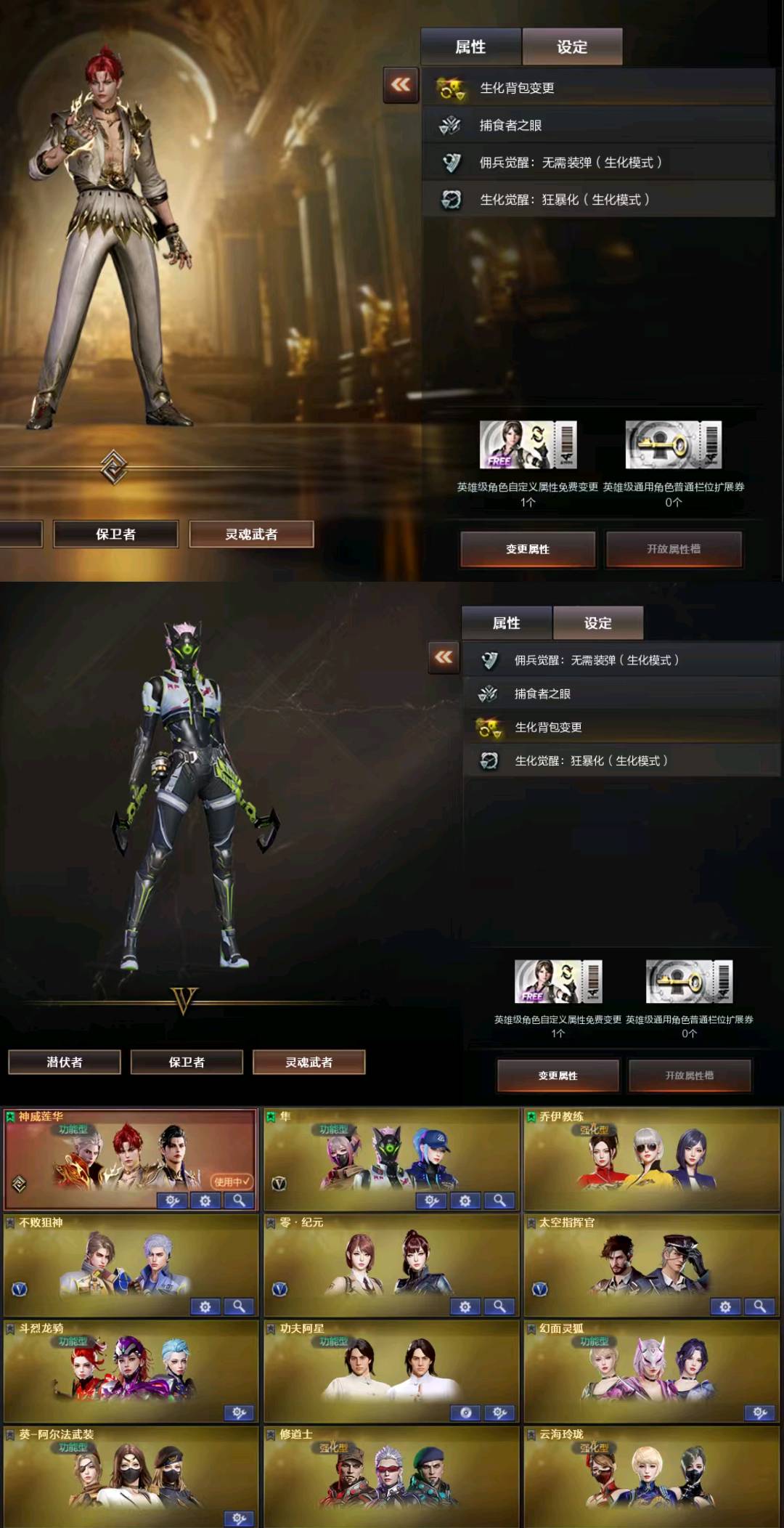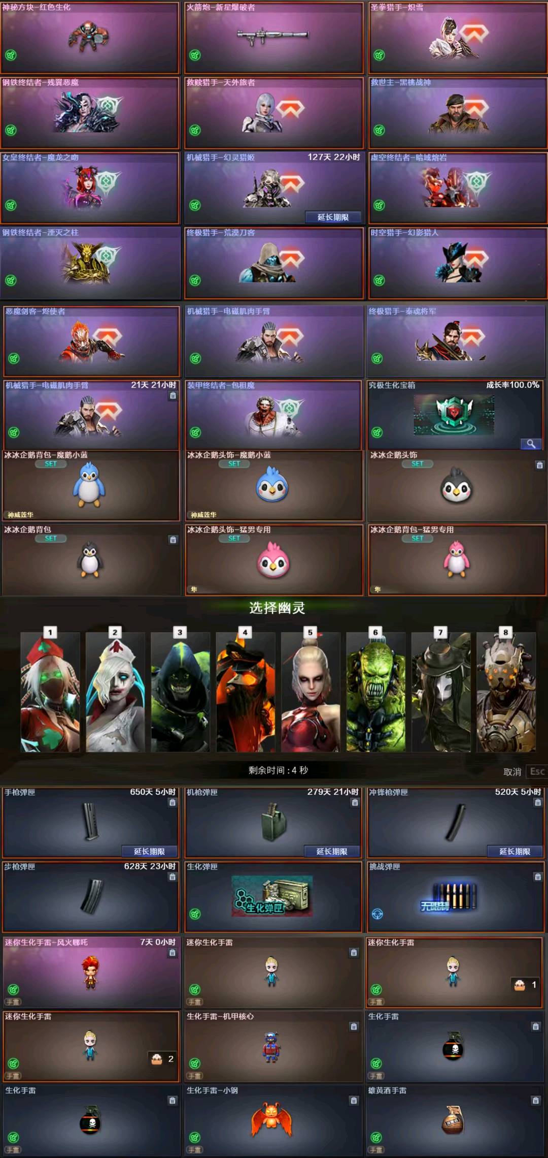 极品生化号/神威莲华/隼/全4防/生化所有变异角色和皮肤/双蝴蝶/六烈/赤芒蝶刃/全弹/幻神白虎