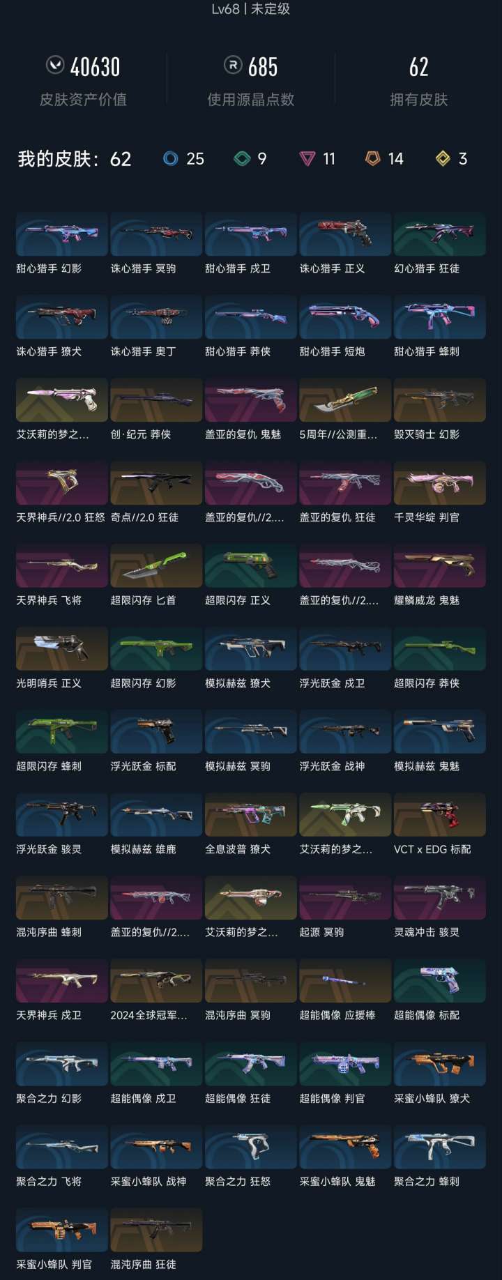 • 武器皮肤数量: 62