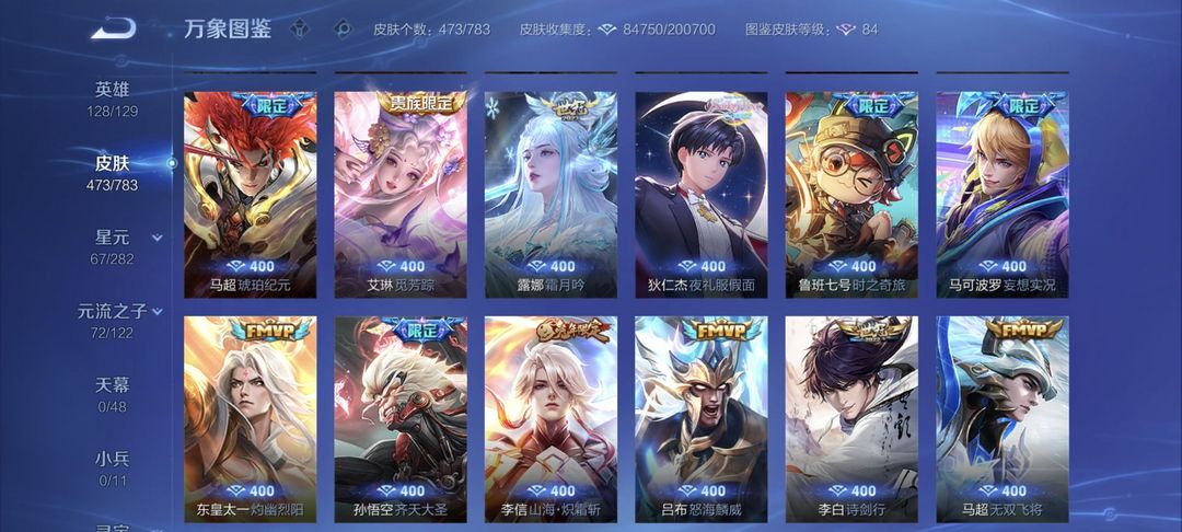 【非云直上】537满皮满典藏12星元◎鲁班新皮◎虞姬星元◎天使星元◎白金战神◎妲己绝版星元