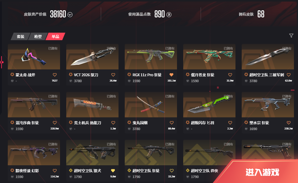 可排位VCT2026篆刀超时空卫队三棱军❤️显卡混沌塑水掠夺盖亚偃月离子堕天遗武狂徒❤️侦察力量太刀