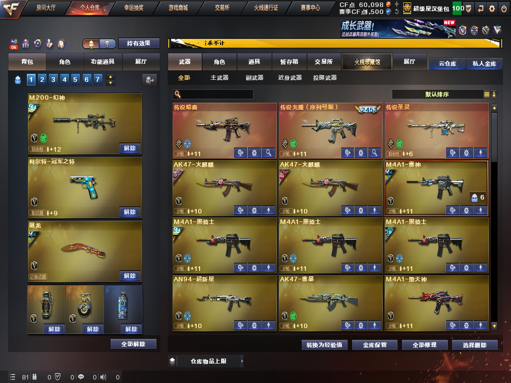不要开挂,开挂sqj,排位不要恶意退游戏会禁赛到点记得续租,高手尽量不要给我打黑屋,谢谢,排位退一把拉黑不管啥原因,退出重进不算,退一把掉线sqj;USP-雷暴,荣耀世冠-柯尔特,柯尔特-冠军之特,Knife-冠军之刃,传说女帝,QBZ03-金色蔷薇,M200-幻神,
