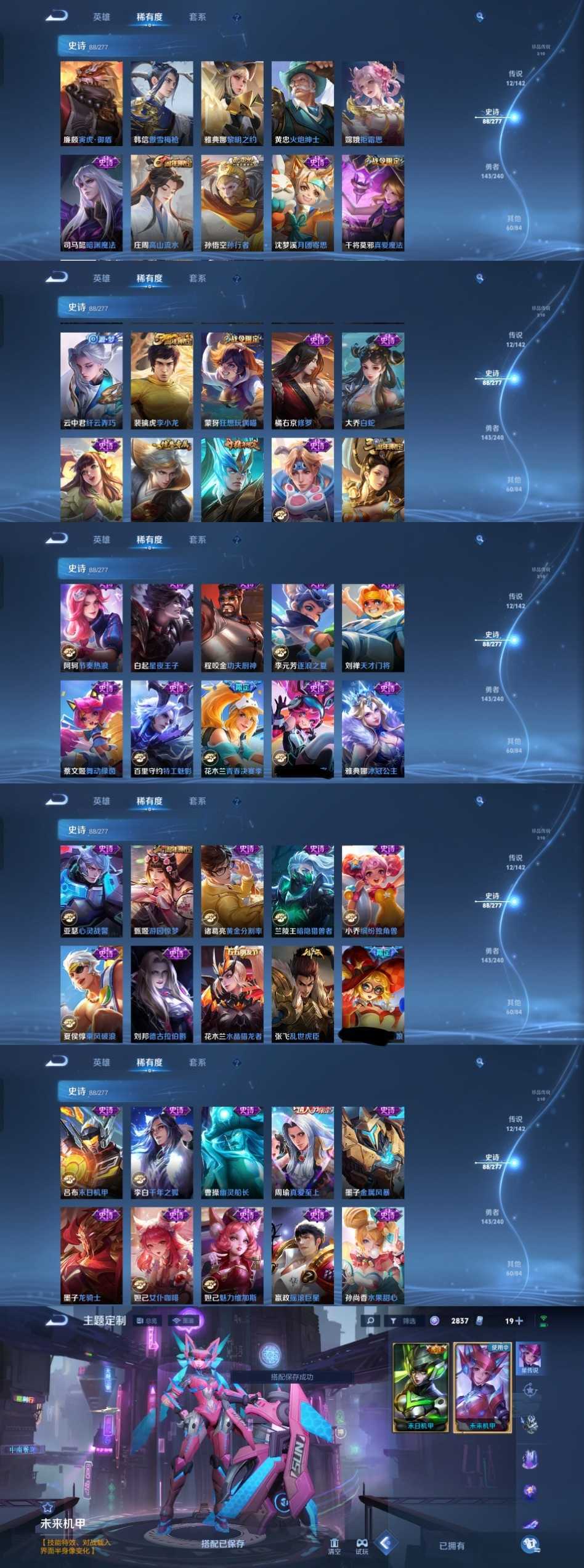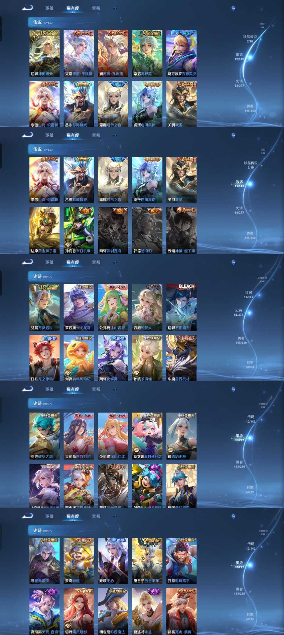 v10、537皮6水4无双、安琪拉-颠倒童话·魔镜、朵莉亚-神骥、遇见神鼓、齐天大圣、白虎志、韩信荣耀典藏、73传说、时之魔女、瑶无双、青丘、九尾、神器明辉仪