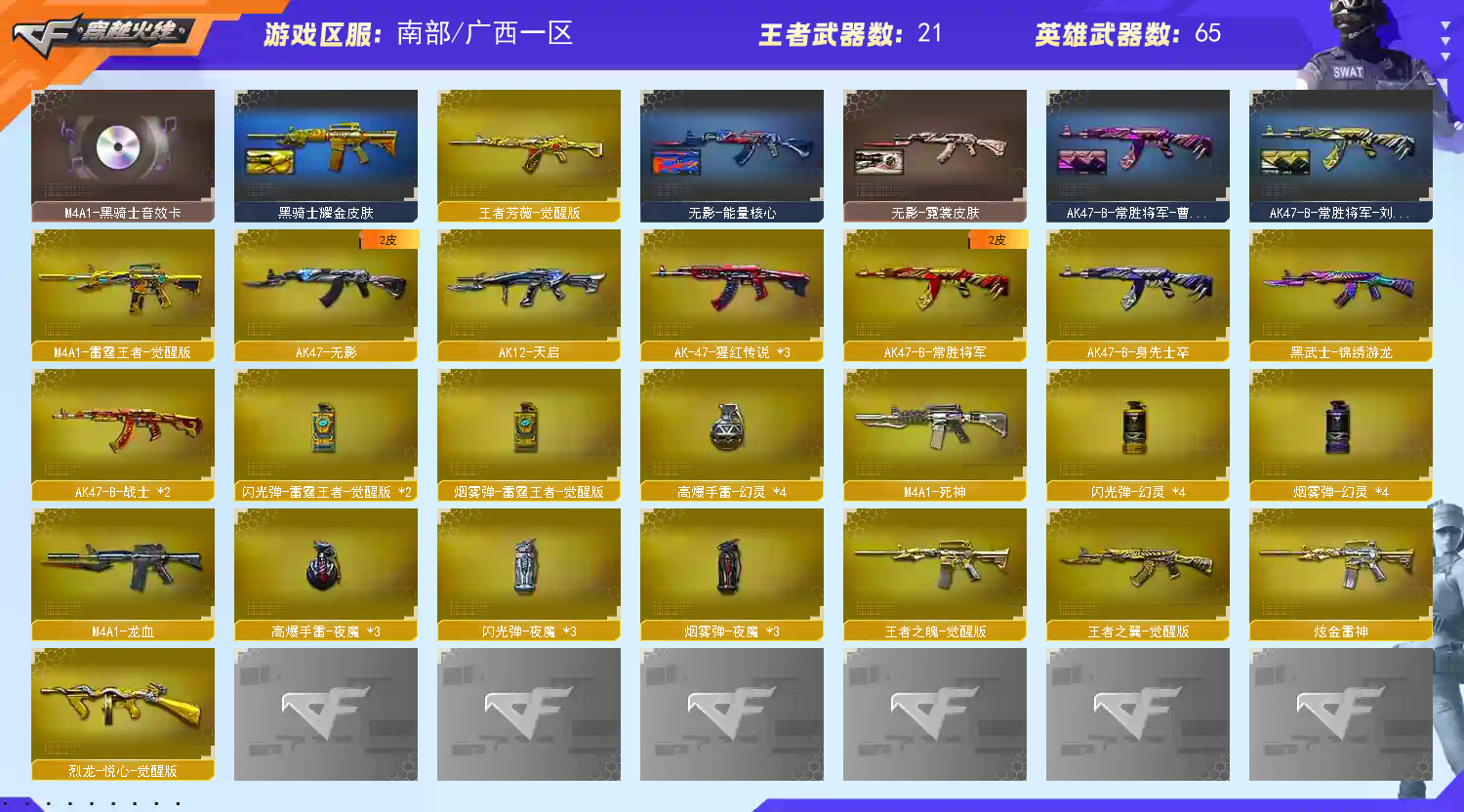 • 游戏区服:穿越火线 / 南部 / 广西一区
