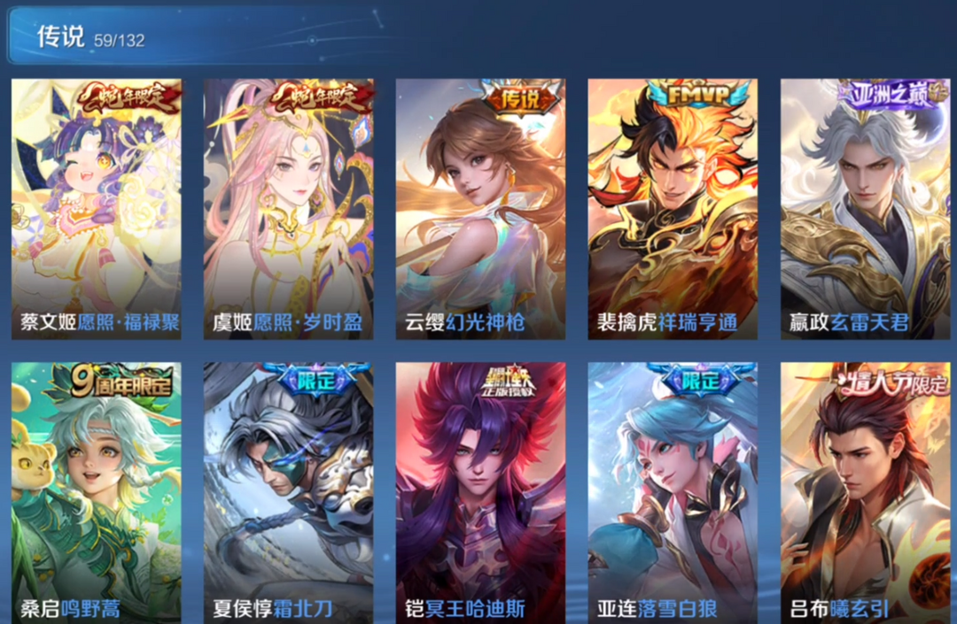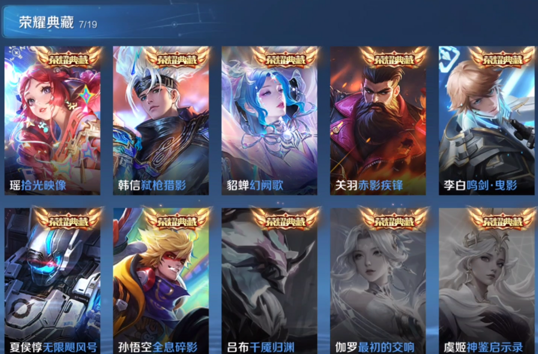 V10、550皮14水、吕布典藏-千魇归渊、云缨-神骥·越千峰、怪盗基德、伽罗星传说红枫、瑶典藏拾光映像、冥王哈迪斯、、龙年限定、齐天大圣