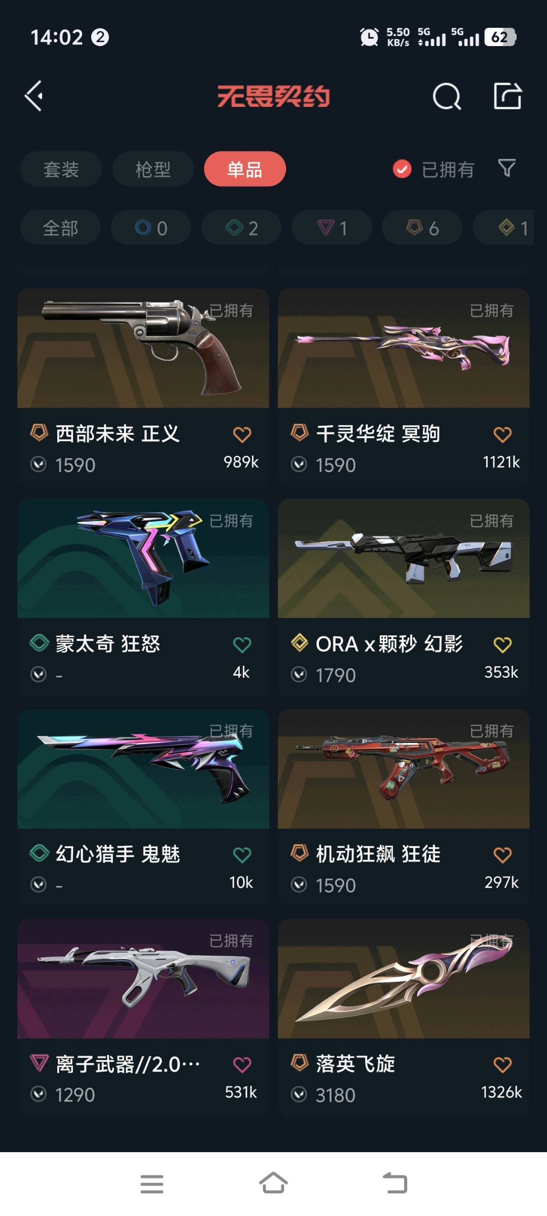 光荣异象-狂徒,千灵华绽-幻影,机动狂飙-狂徒,ORA-x-颗秒-幻影,离子武器//2.0-狂徒