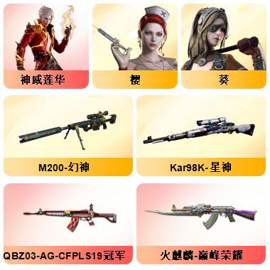 【神威莲华】【幻神3皮/星火小队/AGCFPL S24冠军/青鹤】毁灭战神张飞/毁灭耀金/毁灭暗月/极光能量核心/极光高能霹雳 /天龙传奇70KG/天龙传奇白鲨/ _葵/_樱/M200-幻神/Barrett-毁灭(5)/Barrett-极光(5)/Barrett-朱雀/barrett-金色蔷薇/M200-幻神音效卡/M4A1-黑骑士音效卡/Barrett-毁灭音效卡/Barrett-极光音效卡/屠龙-动感闪耀 音效卡
