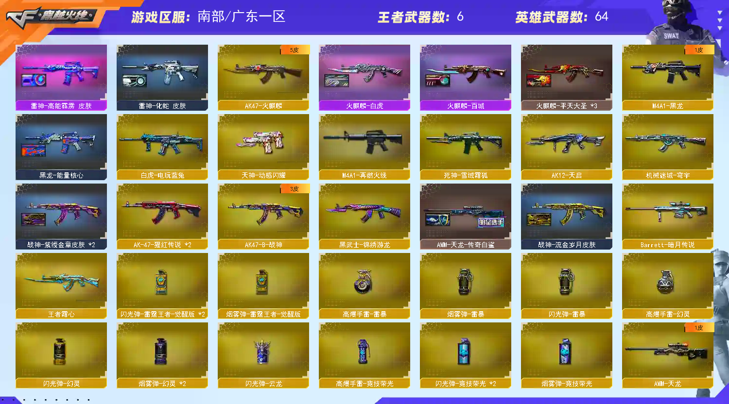 • 游戏区服:穿越火线 / 南部 / 广东一区