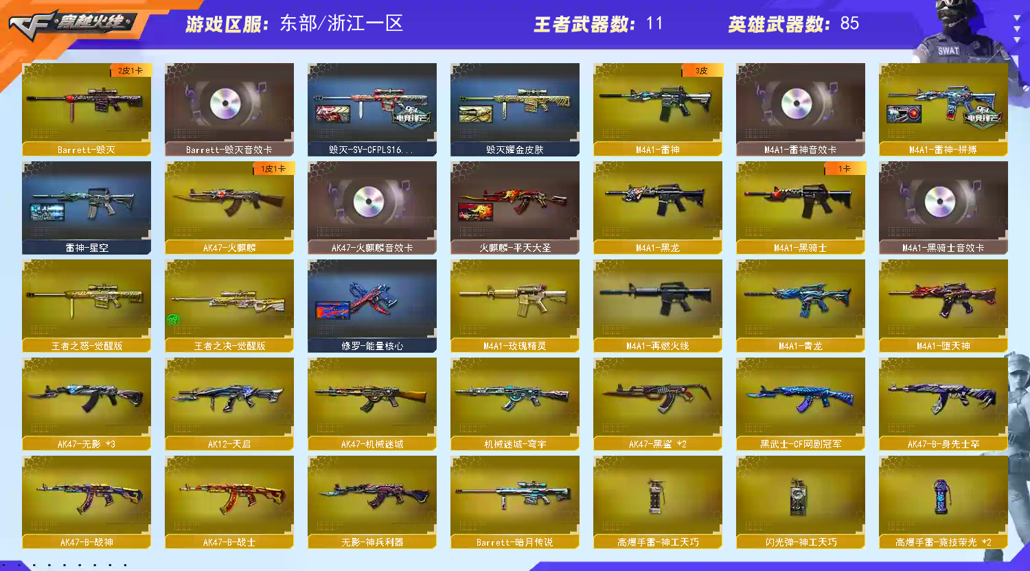 • 游戏区服:穿越火线 / 东部 / 浙江一区