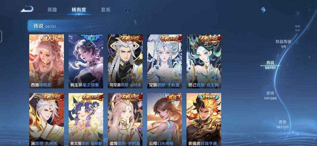 【非沄直接上号】极品V10★三历史国标★430皮★六典藏★诸葛亮新典藏★虎年五限定★鸣剑戈影★活力突击️★多限定