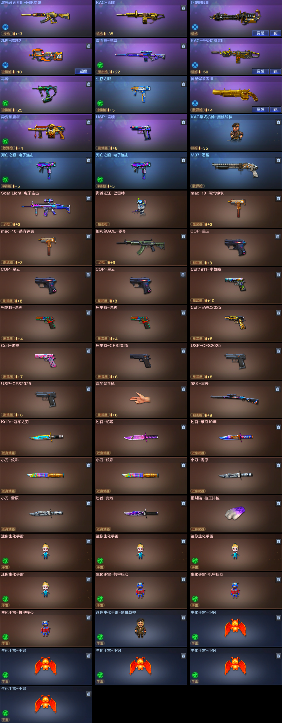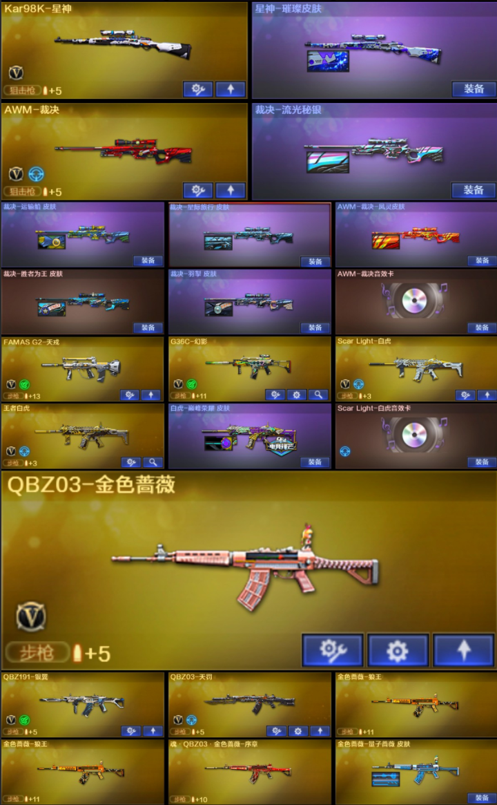 传说艾莉莎/精品爆破号/裁决幻神星神/质量12把副手/法玛斯/G36幻影/冠薇,白虎三件套/雷烟满