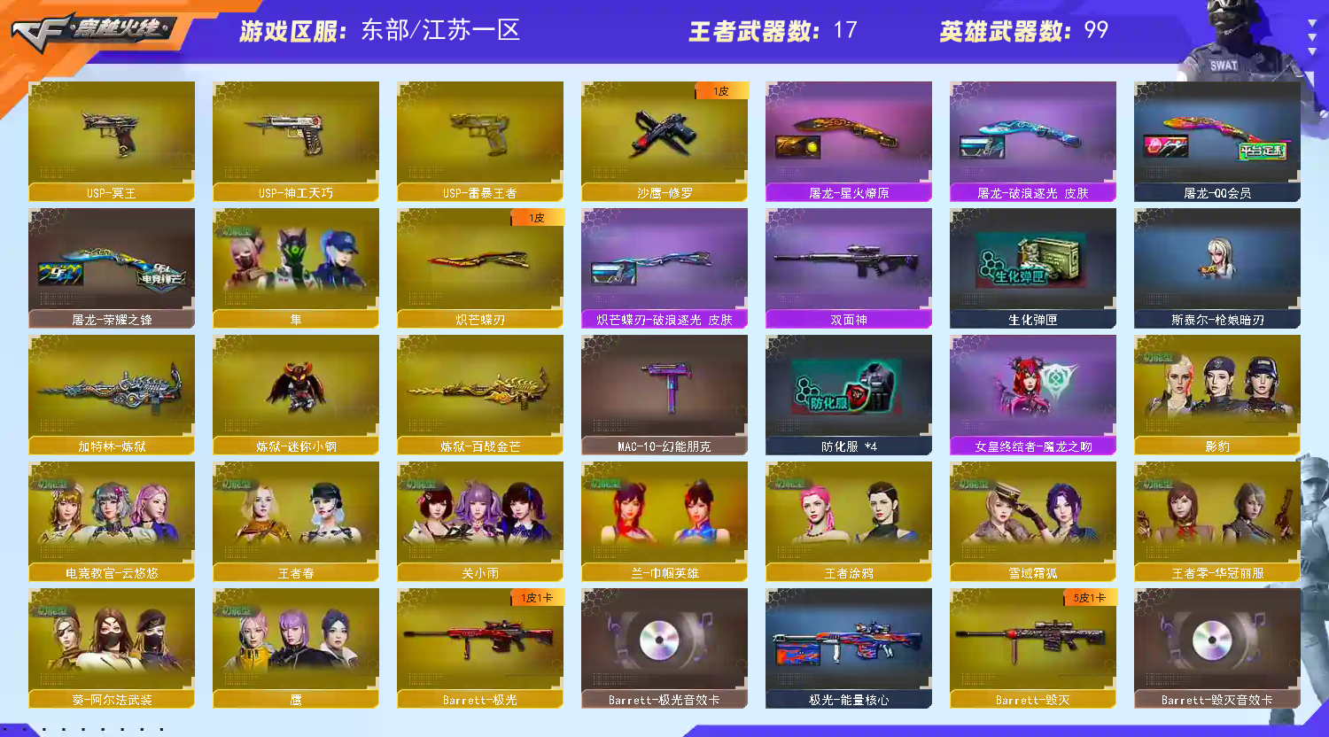 • 游戏区服:穿越火线 / 东部 / 江苏一区