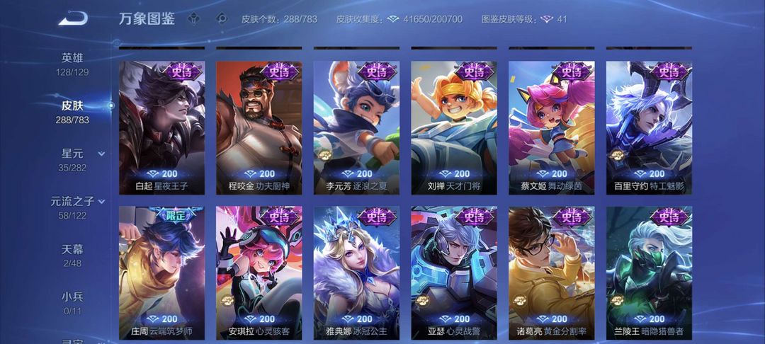 扫码登录。VIP10。385皮肤,七水,四星元,双王者之证!武则天神域,李白荣耀典藏,全息碎影,全符文,各种限定,各种机甲,皮肤都有,绝对满足各位
