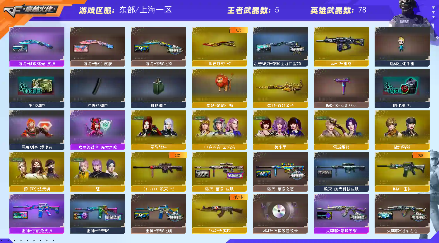 • 游戏区服:穿越火线 / 东部 / 上海一区