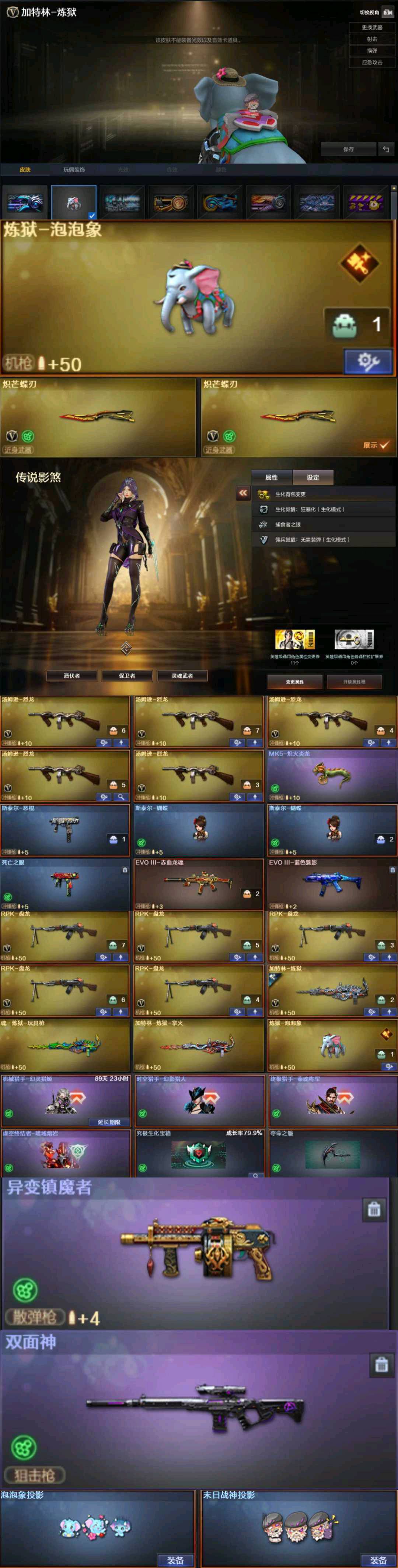 双炼狱泡泡象双炽芒蝶刃异变镇魔者❤四防传说影煞❤双蝴蝶炽火炎龙双面神❤泡泡象投影全生化皮肤全不退包