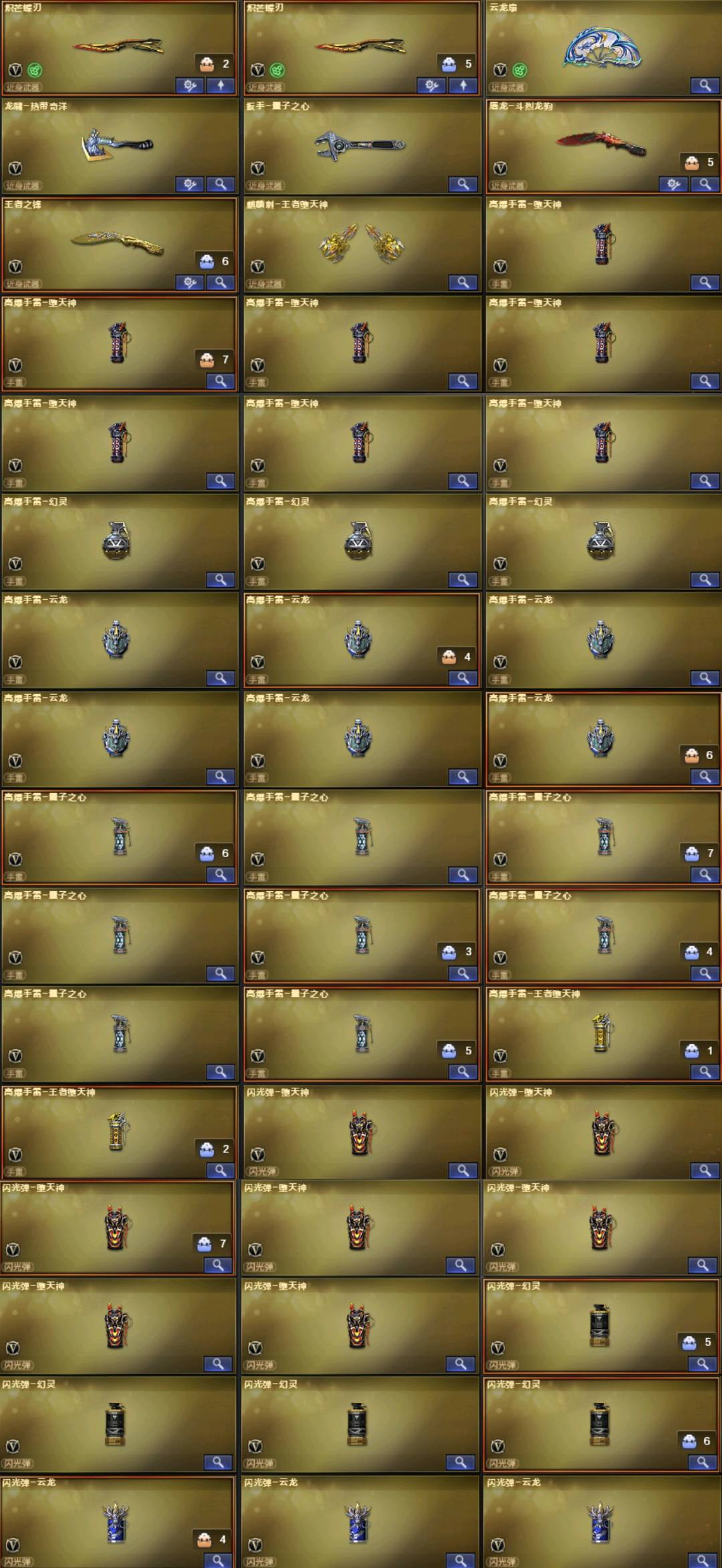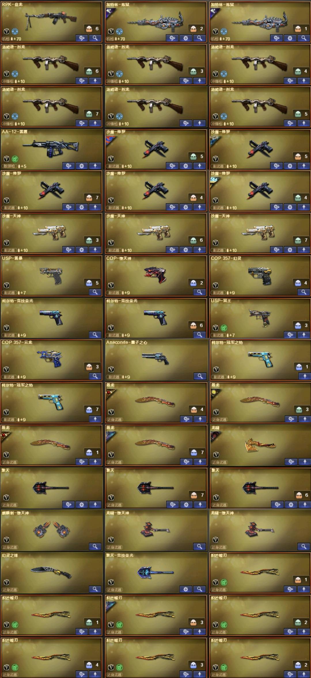 。。。。。;USP-雷暴,柯尔特-冠军之特,炽芒蝶刃,传说影煞,隼,电竞教官-云悠悠,晴雅,
