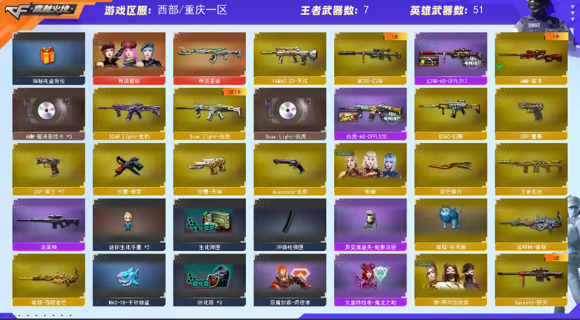 • 游戏区服:穿越火线 / 西部 / 重庆一区