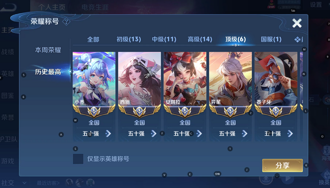 【非云直上】537满皮满典藏12星元◎鲁班新皮◎虞姬星元◎天使星元◎白金战神◎妲己绝版星元