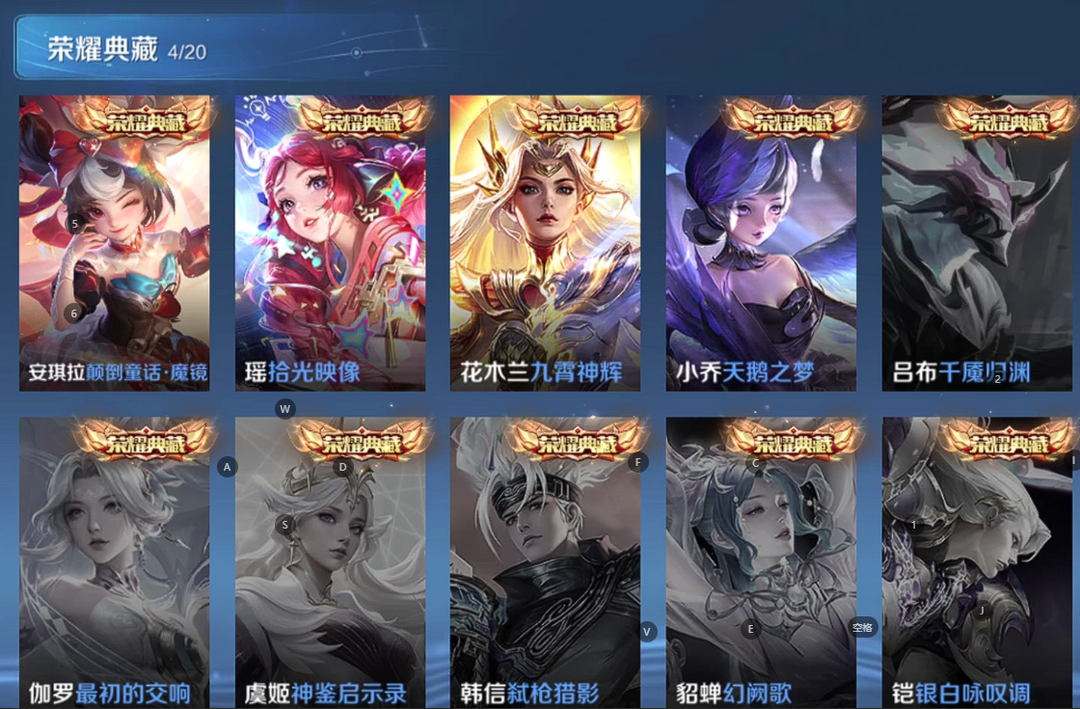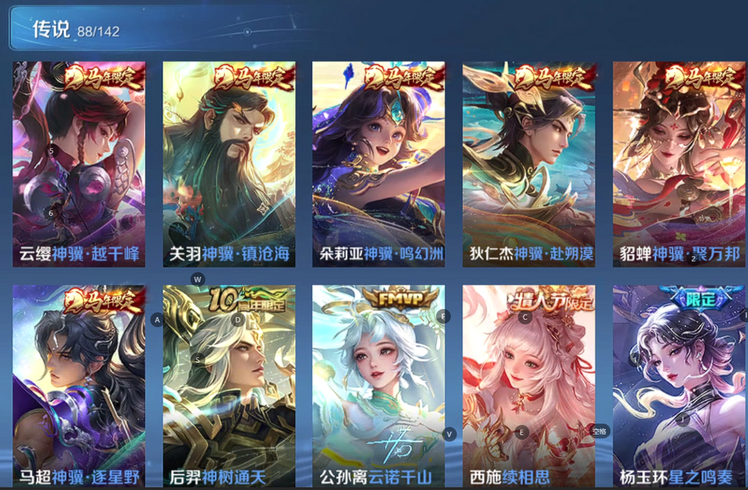 V10、550皮14水、吕布典藏-千魇归渊、云缨-神骥·越千峰、怪盗基德、伽罗星传说红枫、瑶典藏拾光映像、冥王哈迪斯、、龙年限定、齐天大圣