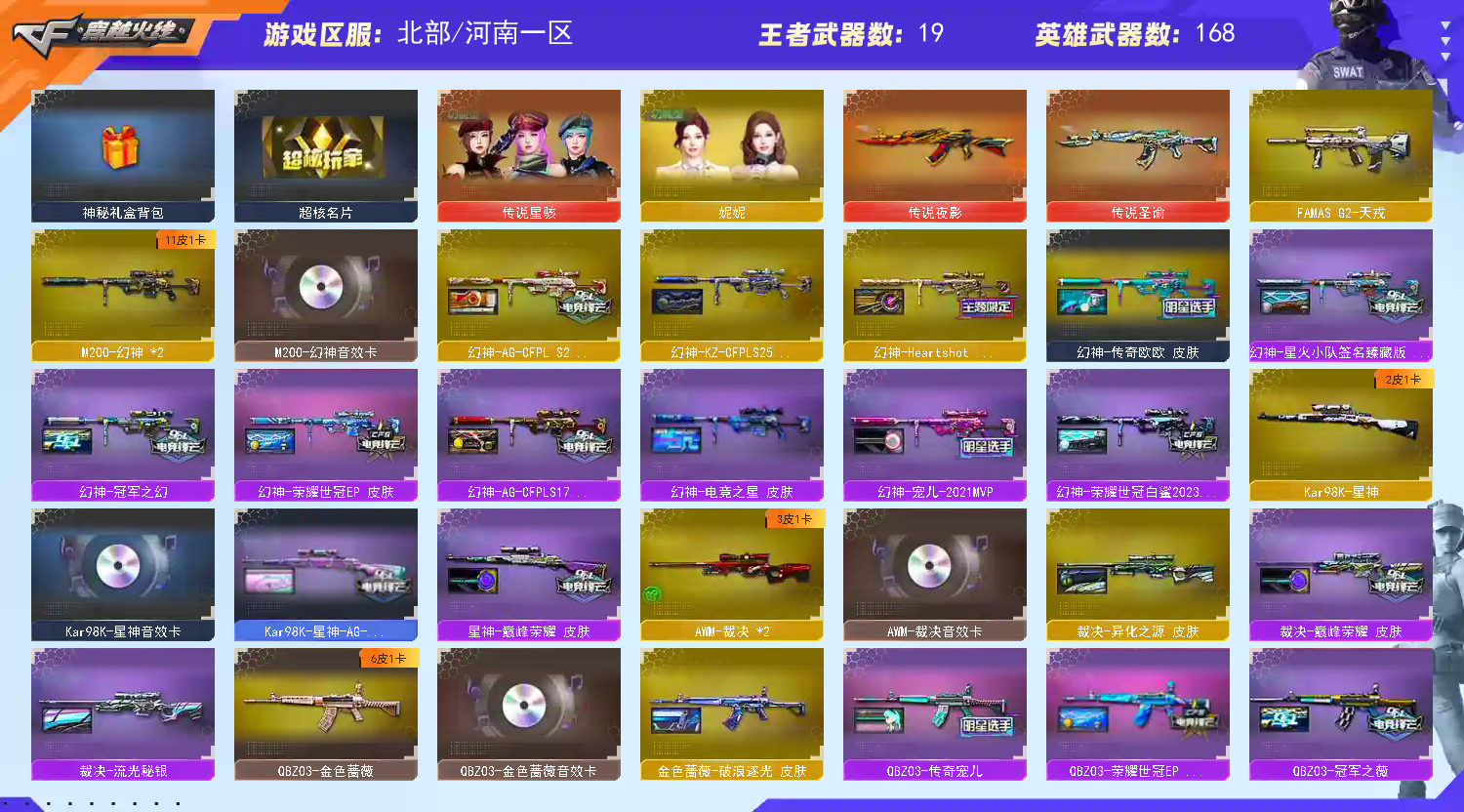 首页 > 租号大厅 > 穿越火线 > 北部/河南一区 > 传说星骇✅金色昵称✅幻神11皮三件套✅裁决三件套✅顶配副手