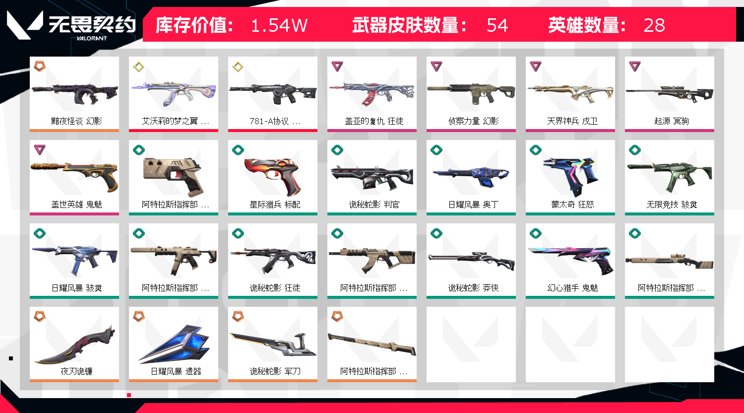 首页 > 租号大厅 > 无畏契约-wegame > wegame/wegame > 挂机拉黑⭐夜刃诡镰⭐蛇影军刀⭐猴子鬼魅⭐小猫盖亚狂徒⭐侦察黯夜781幻影⭐起源大狙⭐