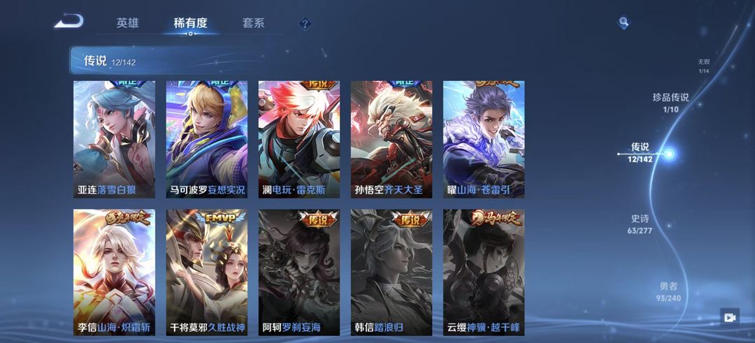 【非沄直接上号】极品V10★三历史国标★430皮★六典藏★诸葛亮新典藏★虎年五限定★鸣剑戈影★活力突击️★多限定